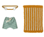 Vacation time! This set includes all essential accessories for a fun day at the beach: a bathing suit, sunhat, and a towel. It all fits the mice in size big brother/sister perfectly.