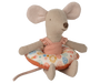 This summer set exist of a little sister mouse dressed in a rose colored swimsuit with her flower printed float around the stomach. She is now ready for a safe swim in sea.