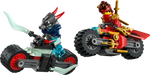 Kai’s Motorcycle Speed Race playset unleashes exciting ninja action for kids. Recreate thrilling chases from NINJAGO® Dragons Rising with two race bikes—Kai’s sleek bike with dual daggers and the menacing Spectral Dragonian Scout’s demon bike. Each comes with a minifigure ready for battle: Kai wields a cool translucent reveal blade plus two golden katanas, while the scout brandishes a sword. Perfect for solo adventures or fierce showdowns with friends, this LEGO® set sparks endless imaginative fun where good battles evil in high-speed style.