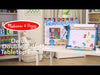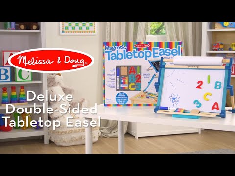 Inspire endless creativity with a double-sided tabletop easel! Make preschool learning fun as kiddos place 36 letter and number magnets on the magnetic dry-erase board and doodle on it with the dry-erase marker. Flip it over to use the 5 colored chalk sticks on the chalkboard. Pull down the 12", 50-foot-long paper roll and use other art supplies to make masterpieces! Measuring 22.5" x 18.8" x 3.5", this tabletop easel can be easily brought along on adventures and folds flat for storage.