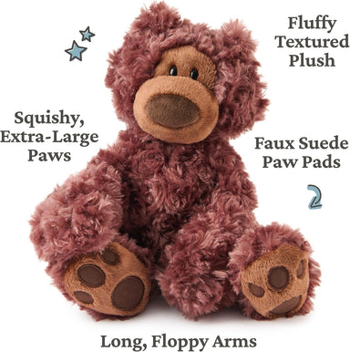 Introducing Philbin, the chocolate-colored teddy bear that's your forever friend! This 12-inch sweetheart boasts oversized paws with cozy faux sued...
