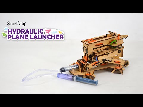 Check out our new favorite STEM activity for curious kiddos! Ages 6+ use the crystal clear instructions to build a durable wooden paper plane launcher, no glue required. Once the launcher is built, kiddos press the syringe to watch the machine come to life and launch the paper airplane across the room. They'll learn about the forces of flight, hydraulics, and scissor mechanisms as they experiment with different types of airplanes... and can even try launching foam darts!