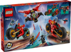Jump into the action with the Ninja Combat Vehicle from NINJAGO® Dragons Rising! This 3-in-1 LEGO® set transforms from a big ninja bike into Kai’s bike, Wyldfyre’s bike, and Frak’s jet with cool stud shooters. It includes 6 minifigures—Kai, Wyldfyre, Cole, Nokt, a Spectral Dragonian Scout, and Frak—with ninja swords and special accessories for exciting battles. Perfect for kids 8 and up, it offers fun building and play inspired by the TV show. Let your ninja adventures take flight with this awesome set!