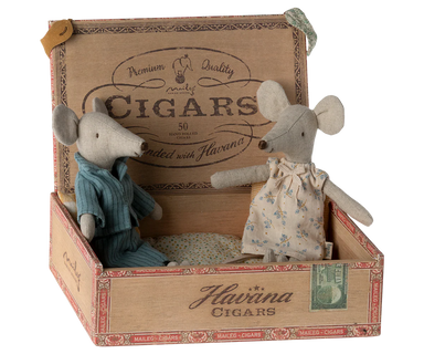 Meet the charming Maileg Mum & Dad Mice, dressed for bedtime in cozy nightwear and cute eye masks. Snuggled together in a classic cigar box, th...