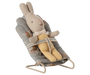Make bedtime a breeze with the Maileg Blue MY Babysitter. Its sturdy metal base wrapped in soft, charming fabric creates a cozy spot perfect for tiny rabbits, bunnies, and baby mice to cuddle up and drift off. This adorable chair brings the sweetest dreams to your little friends in style!