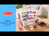 Sweeten up playtime for imaginative kiddos by putting them behind the counter of a chocolate factory! This interactive wooden playset features an intuitive design, empowering kids to order, assemble, display, and sell pretend play candies. They'll flip switches, slide a conveyer belt, drop wooden fillings and plastic coatings down chutes, and box up their creations! Complete with stickers and play money to elevate the fun, this set allows kiddos to mix and match 6 bases, 6 tops, and 6 fillings for countless creative combinations. Great for color matching, counting, and developing language skills through cooperative play.