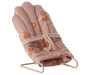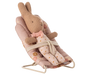 Make bedtime a breeze with the Maileg Rose MY Babysitter. This charming chair features a sturdy metal base wrapped in soft, lovely fabric, perfect for your small rabbits, bunnies, or baby mice friends. Cozy and just the right size, it’s the ideal spot for little ones to rest and dream away.